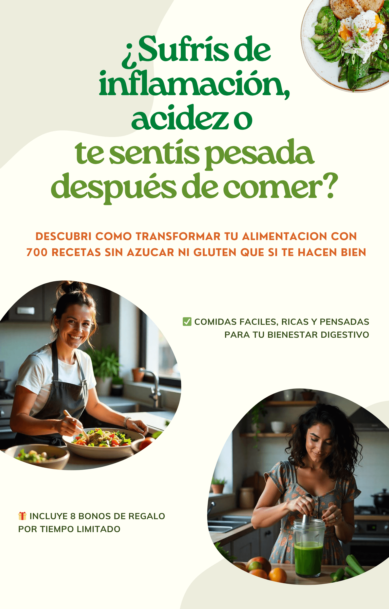 Sí. Las recetas están diseñadas específicamente para evitar ingredientes inflamatorios como el azúcar y el gluten. Muchos usuarios reportan mejoras notables en su digestión, niveles de energía y bienestar general al seguir este tipo de alimentación.