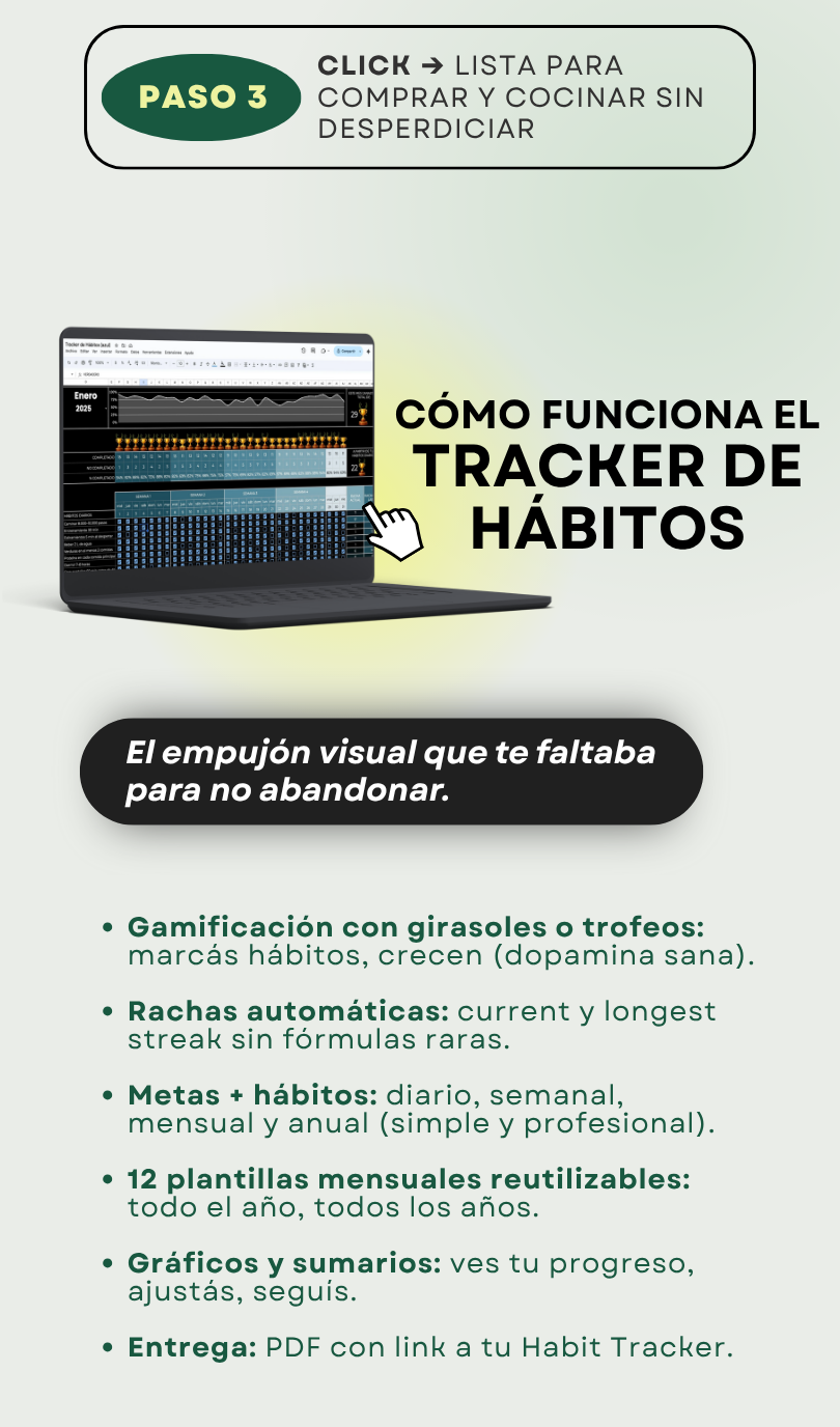 - Tracker de hábitos ➜ te ayuda a ser constante, no perfecto.