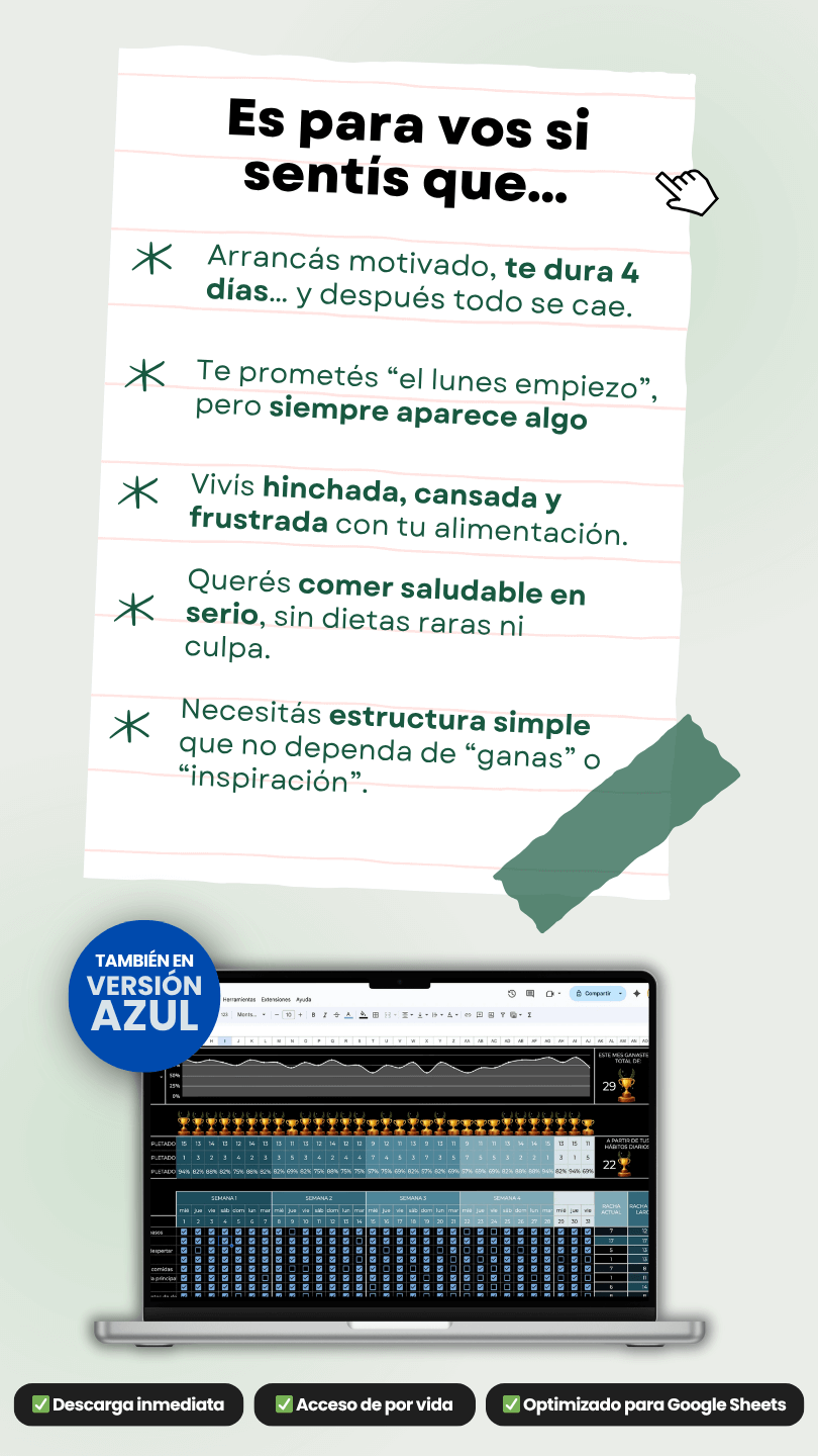 La diferencia es que acá no hay solo una hoja linda: hay un sistema completo pensado para tu vida real.